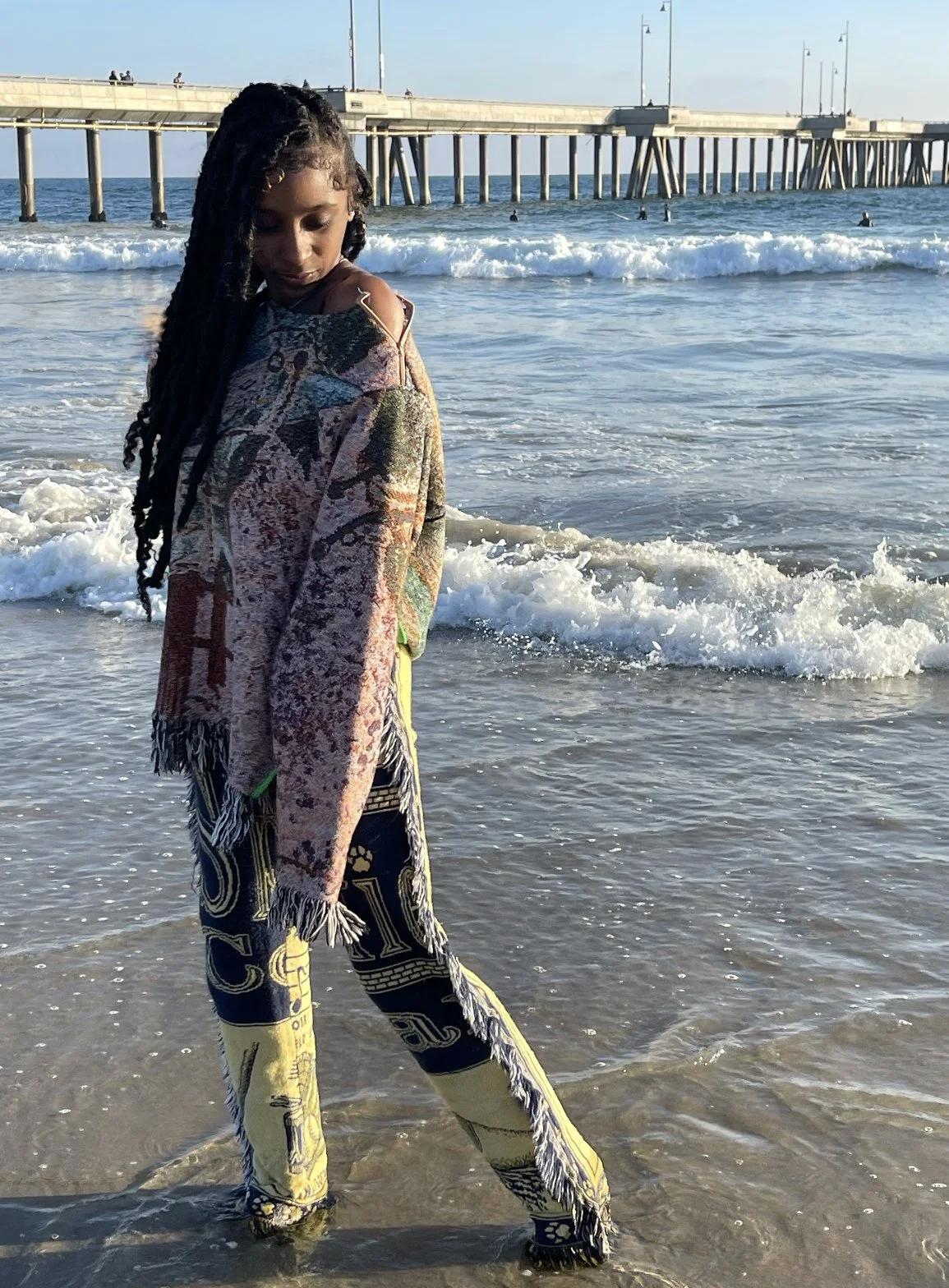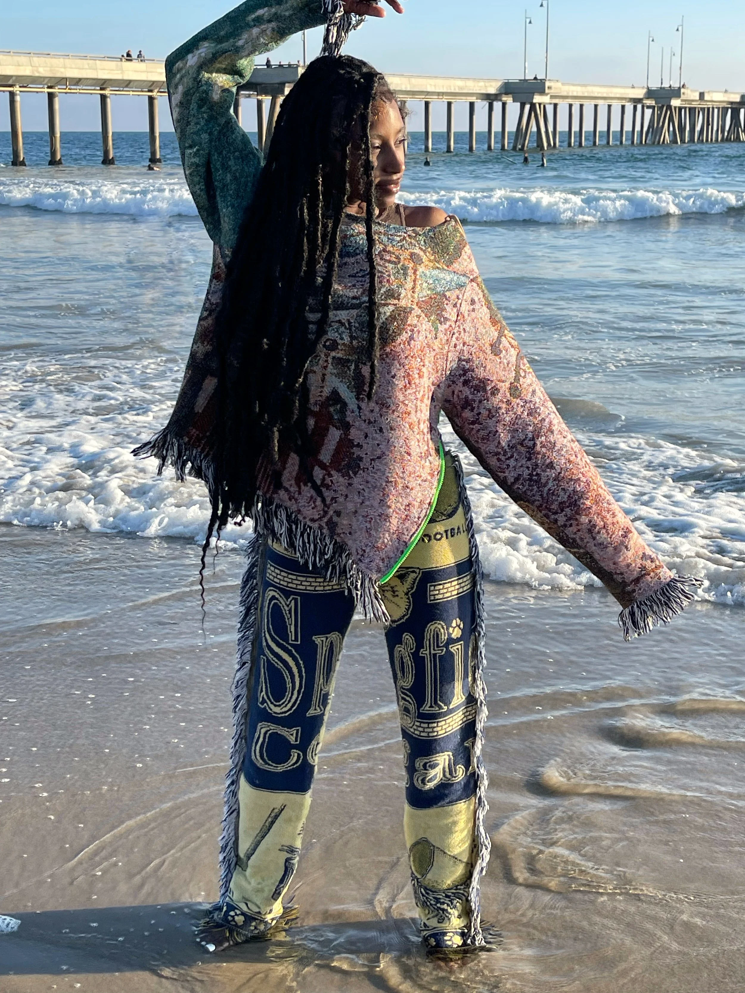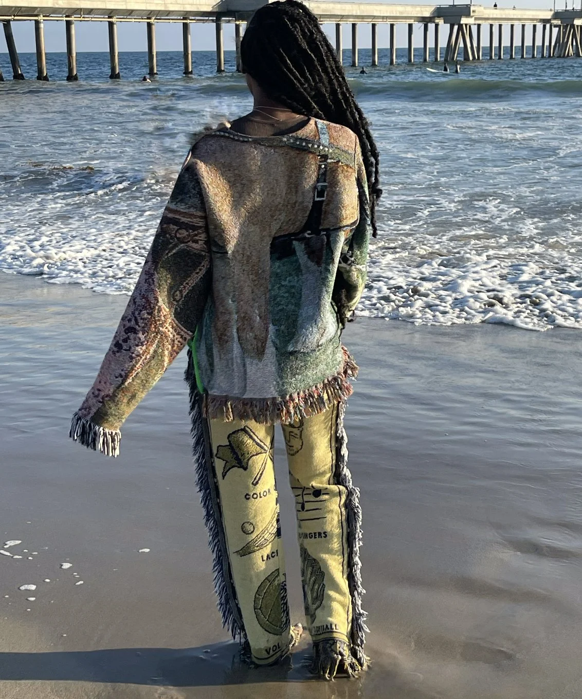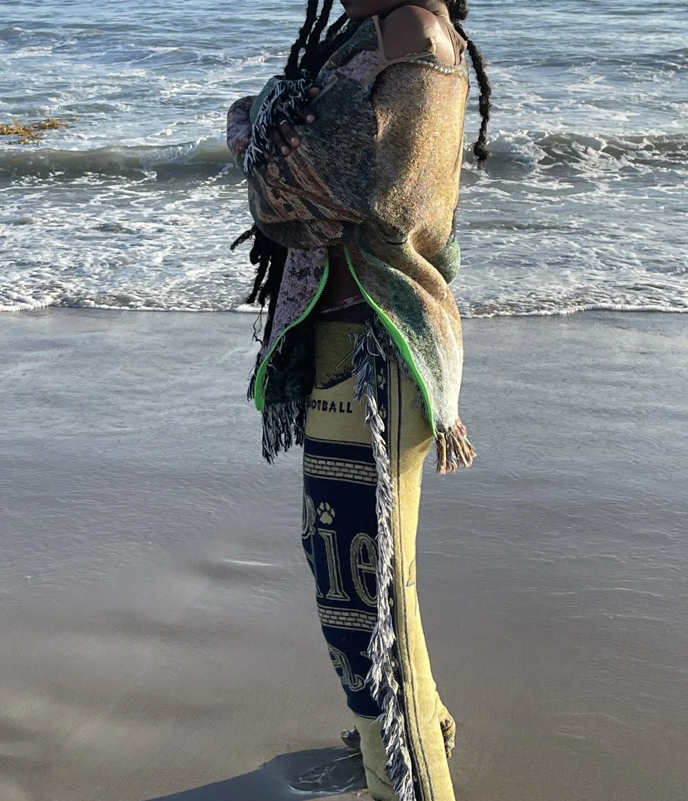 Handcrafted from vintage-sourced tapestry blankets.